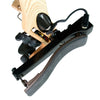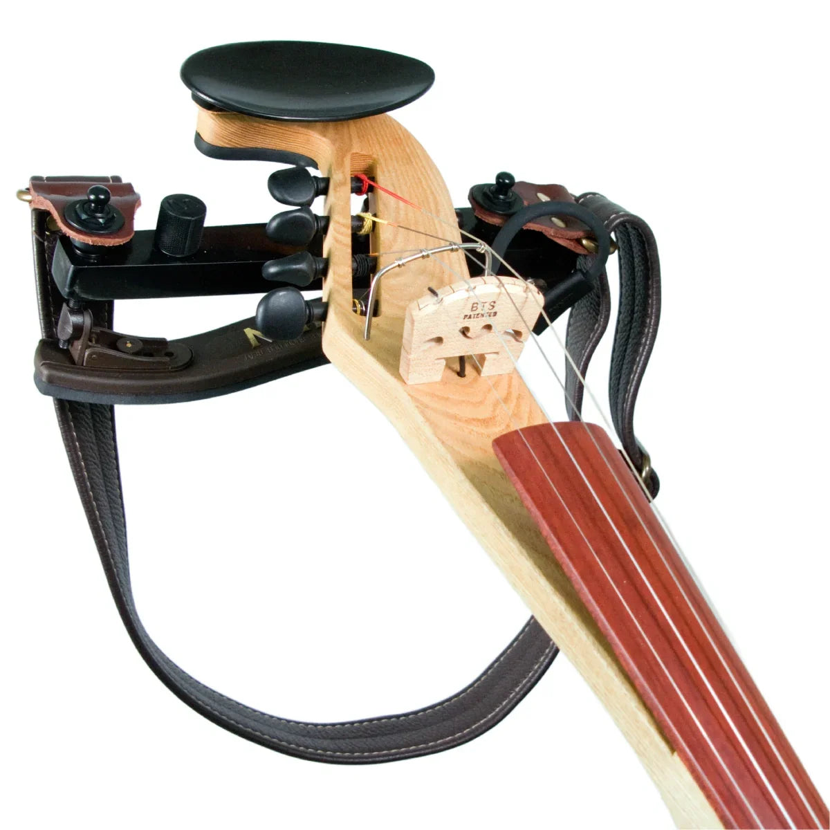 We think Al has created a fantastic instrument that honors all three points, employing and innovating on all the best violin design ideas while inventing several new ones of his own! The result? Classic, clean lines, light weight, ergonomic playing experience, and rich tone. The attention placed on designing the instrument specifically for the player is what sets Wind Fiddles apart. As with other notable ergonomic designs, the Allocaster ditches the scroll and places tuning pegs (Wittner Fine-Tune planetary tuners) at the shoulder. The angled pegbox design places all pegs on one side for effortless tuning. As for comfort, the Wind Fiddles proprietary shoulder rest adaptor allows any (standard) shoulder rest to be used, while keeping the violin as slim as possible. The shoulder rest adaptor allows independent up/down adjustment of both ends of the shoulder rest pad as well as providing adjustment toward and away from the player’s neck.